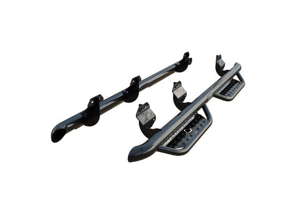 They feature 1-1/2 in. diameter, drop-down tubes that hold 4 in. wide, 12-gauge punched plates for the perfect platform for stepping into your truck with ease.
